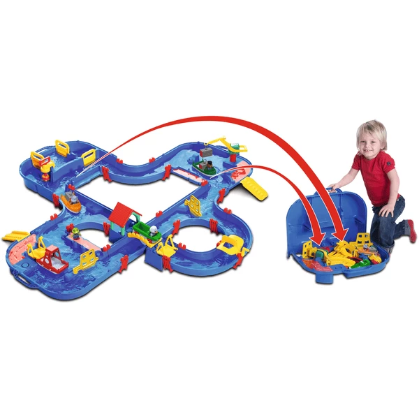 Speel- en waterbaan compleet met sluis, veerpont, containerhaven, jachthaven , boothuis en brug.