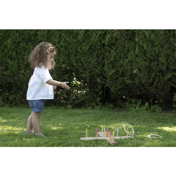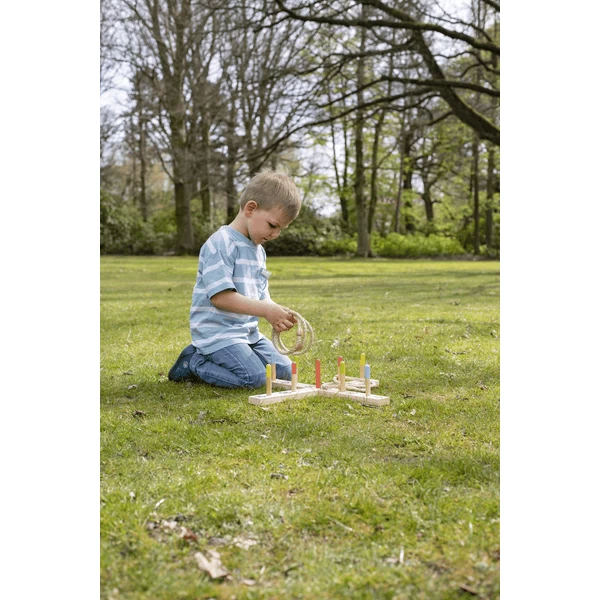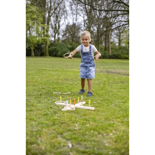 - Ringenspel met 1 kruis, 5 ringen en 9 spelstokken.