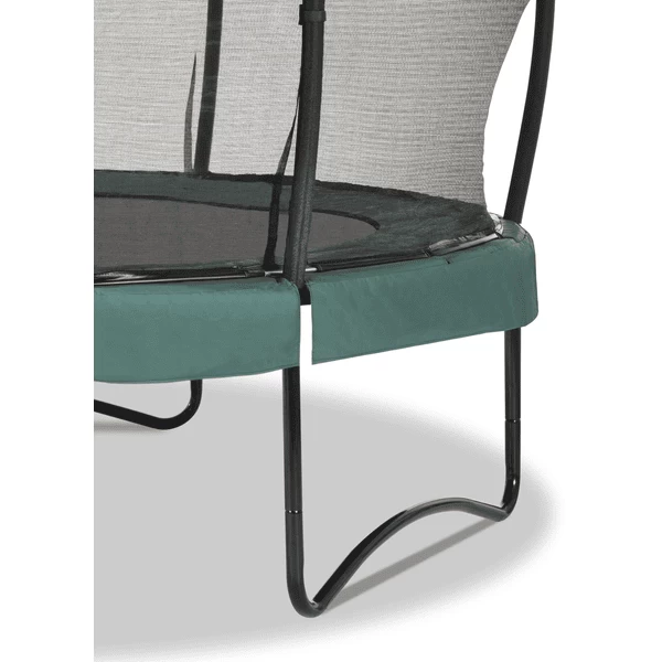 De extra lange, dubbelconische veren van maar liefst 21,6 cm zorgen voor de perfecte sprong en een zachte landing. Het gegalvaniseerde en gepoedercoate frame geeft de trampoline een lange levensduur. Ringen van glasvezel en gebogen buizen houden het veiligheidsnet superstrak en de extra dikke beschermrand met een waterafstotende pvc-laag beschermt zowel u als de trampoline optimaal.