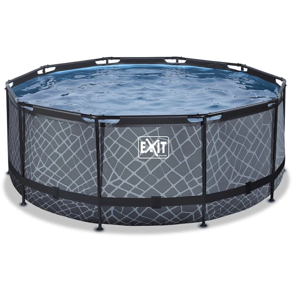 Ontdek hoe stabiel een rond zwembad kan zijn: het gepoedercoate stalen frame en de sterke framepoten van de EXIT Stone Pool zorgen ervoor dat het zwembad altijd stabiel is en vele jaren kan worden gebruikt. Het meegeleverde watercirculatiesysteem maakt dit zwembad compleet. De hoogwaardige zandfilterpomp reinigt de kleinste deeltjes uit het zwemabd door het te verwijderen van het filterbed Dit zorgt ervoor dat vuil zoals zand, ongedierte of algen in het filter terechtkomen. In de EXIT Stone Pool neem je altijd een frisse duik!