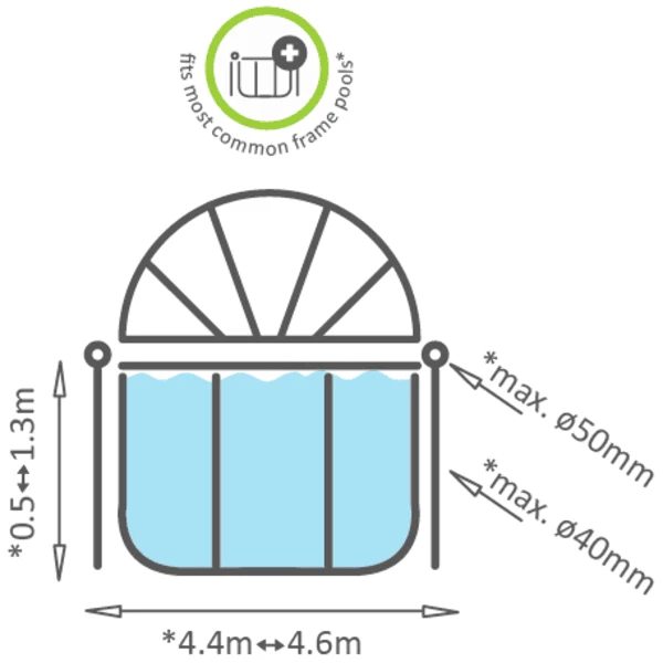 - Voor zwembaden met een afmeting van 440 tot 460 cm