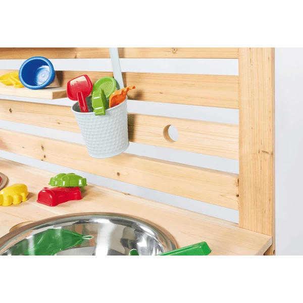 Dankzij de 2 grote spoelbakken, een doorgang voor de bevestiging van een tuinslang in de achterwand en diverse opbergmogelijkheden, kan deze naar hartelust worden afgestemd op deze massieve modderkeuken.