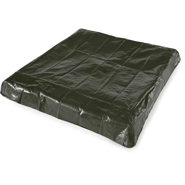 zandbak is voorzien van een deksel, een zandbeschermingsfolie en vier