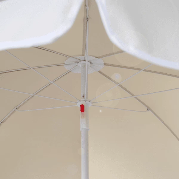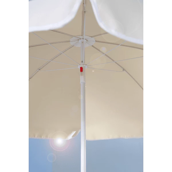 - Beige parasol met Metal lframe en een grijs geglazuurde bevestigingsstang