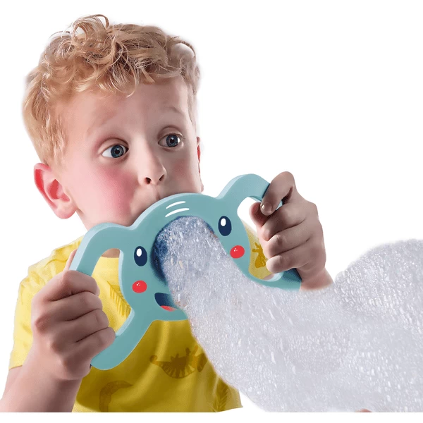 Met deze set van bubbelschuim olifant van SES Creativ e geef je de sterke olifant zijn slurf terug. En dit is hoe het werkt: Zet eerst het handige olifantenhoofd klaar met het gele mondstuk en de blauwe badstof blaasring, houd het bij de oorhendels en dompel het in de zeepbellenoplossing. Haal dan snel adem, blaas in het midden en verbaas je gewoon. In een oogwenk heeft het dierenvriendje een lange slurf van pluizig noppenschuim!