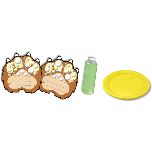 - Trek de berenhandschoenen aan, dompel ze in een sopje en zwaai de pootjes door de lucht