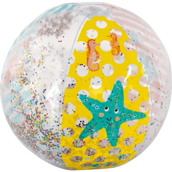 Zomer, zon, plezier! Deze kleurrijke bedrukte strandbal met glitters zorgt voor leuke uren buiten.