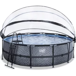 EXIT TOYS EXIT Frame Pool ø488x122cm (12v Sand Filter) – Grijs + Zonnedak + Warmtepomp