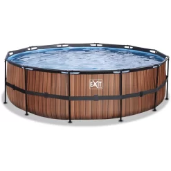 EXIT TOYS EXIT Frame Pool ø488x122cm (12v Sand Filter) – Houtoptiek + Zonnedak + Warmtepom