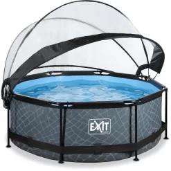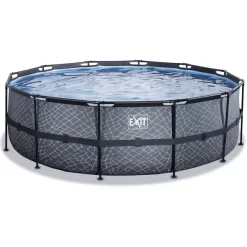 EXIT TOYS EXIT Frame Zwembad ø244x76cm (12v Cartridge Filterpomp) – Grijs + Zonneluifel