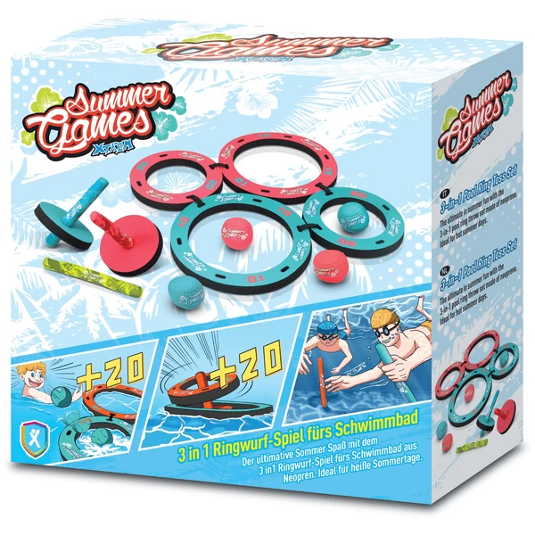 - Inhoud: 4 duikelstokken (lengte: 19 cm), 6 ballen (Ø 5 cm), 2 ringen à 13,5 cm Ø, 2 ringen à 20 cm Ø, 2 ringen à 26,5 cm Ø